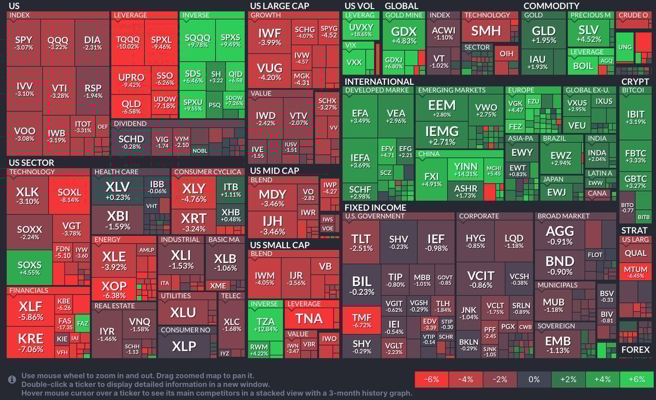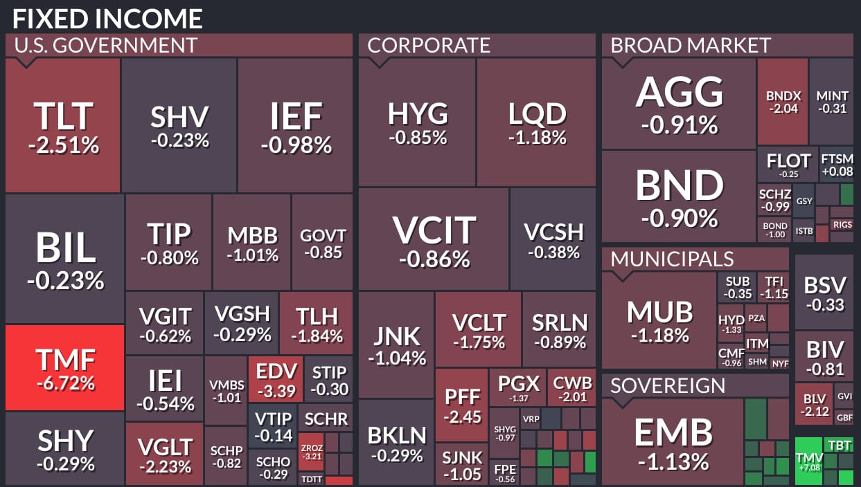 Otros afectados: TMF -6.72%, VGLT -2.23%, TLH -1.84%.