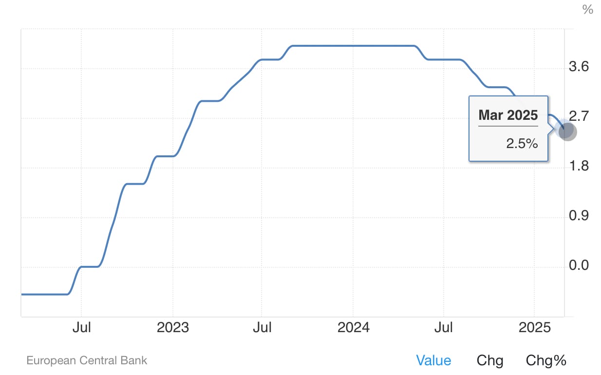 💶 BCE baja su tasa de depósito en 25 puntos básicos, hasta 2,50%.