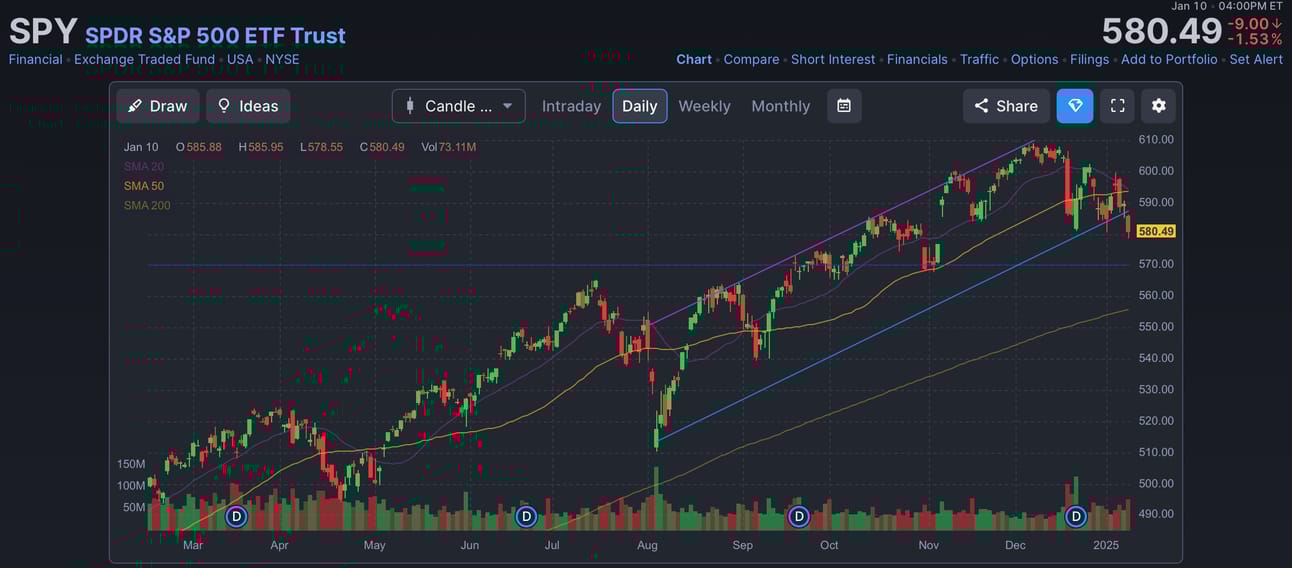 💡 El Standard & Poor’s 500 (SPY) cayó un -0,71%. Otra semana más en la que la bolsa americana ha caído. Los inversores están cada vez más confundidos y ya temen que este año 2025 no sea tan bueno como el año 2024, donde el S&P 500 ha volado gracias a las 7 magníficas.