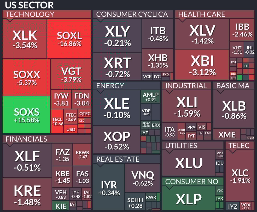 1️⃣ Tecnología 💻 (XLK -3,54%)