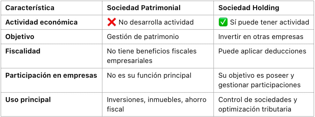 5️⃣ Diferencias clave entre Sociedad Patrimonial y Holding💡