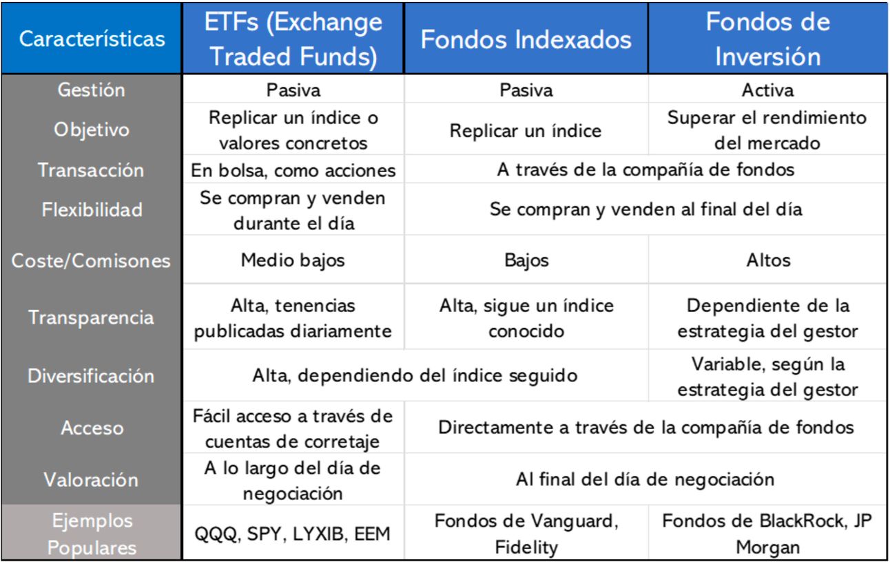 - ETFs vs Fondos Indexados vs Fondos de Inversión -