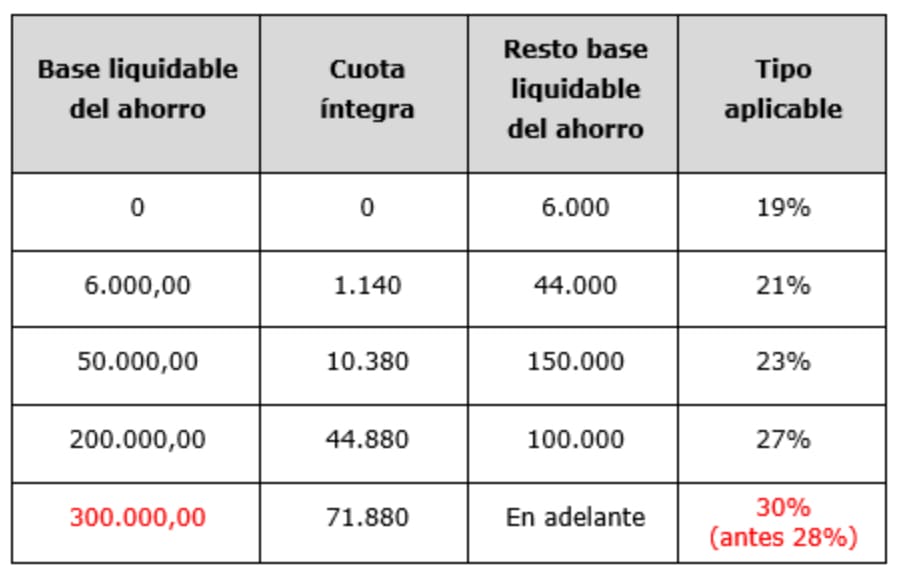 💡Si recibes dividendos o intereses por bonos y cuentas remuneradas, estos tributan en la base del ahorro.